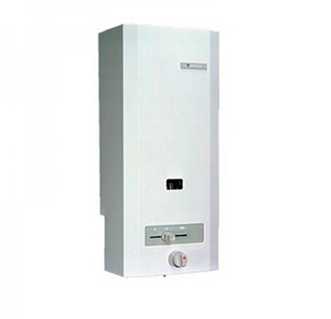 Calentadores de Agua a Gas Junkers W 135-9 KV1 B con un caudal de 6 litros por minuto. Destacan por prescindir de una llama piloto permanente y funcionan con una batería de 1,5 V. Están disponibles para gas natural y butano.