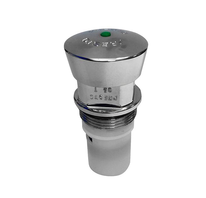 Cabezal para grifo temporizado de urinario Presto. Modo de Pulsación Normal. Temperatura admisible del agua: Los materiales que constituyen las piezas de los grifos pueden resistir una temperatura máxima de 70ºC. Presión de uso recomendada: 1 a 5 bar. Accionamiento mediante pulsador.