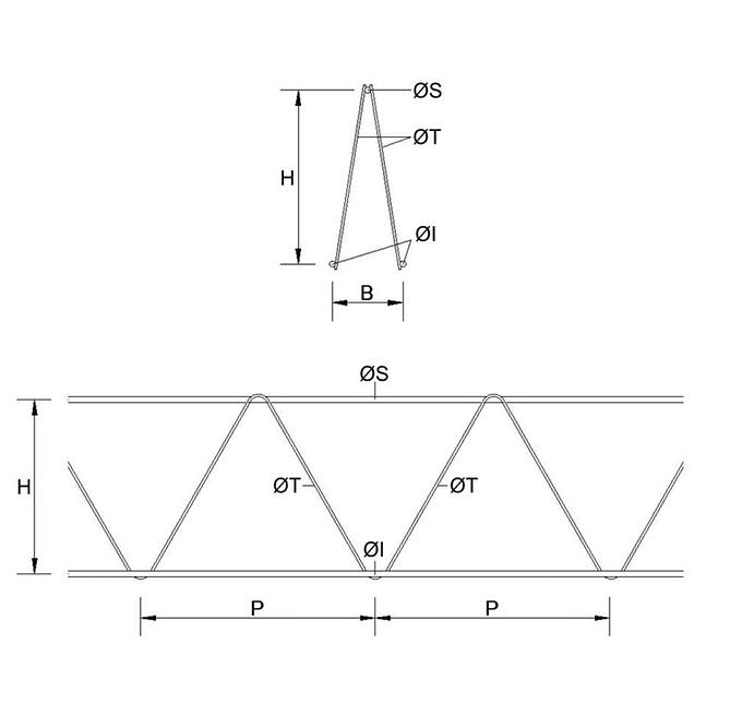 Las armaduras o separadores son elementos ideales para asegurar una separación uniforme entre mallas en diversas aplicaciones de construcción, como losas, soleras, muros y paneles prefabricados. Están compuestos por tres alambres corrugados que forman una estructura triangular espacial, unidos mediante electrosoldadura a dos alambres lisos laterales de conexión (celosías).
